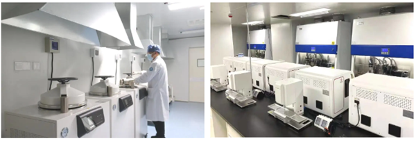 温州市首个核酸检测基地——温州市中心医院核酸检测基地建设面积1200平方米,包含了1个试剂准备区、3个核酸前处理区、1个扩增分析区、2个应急仓库等分区,配备有14台生物安全柜、5台全自动前处理仪、8台自动化核酸提取仪、28台荧光定量PCR仪、14台低温冰箱、7台高压灭菌锅等设备,实现检测全流程无缝隙管理,可一次性容纳每日100名工作人员4班次的同时运作,保证日检测能力达到3万份,形成核酸检测工作平时练兵,战时高效运转的快速反应机制。