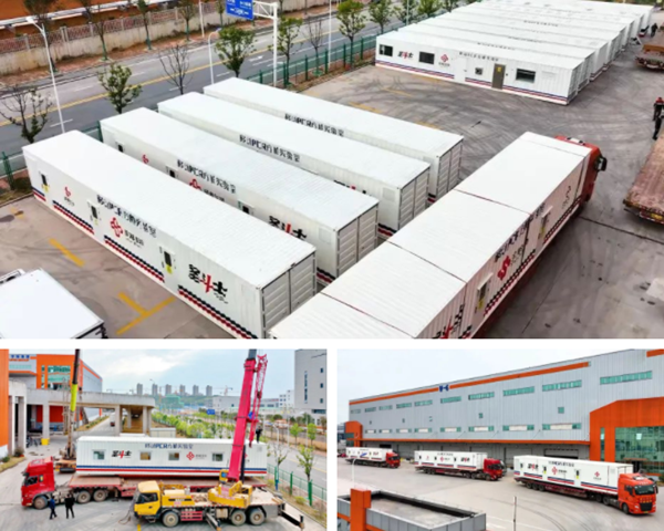 在数十名技术工程师的全力配合下,方舱吊装及仪器设备等物资清点准备工作紧锣密鼓地开展起来。随着调试工作顺利完成,一辆辆“圣斗士”从圣湘生物移动方舱实验室基地陆续发出,奔赴各自“战场”。到达指定地点后,工程师们第一时间进行方舱内部仪器安装、设备调试等工作,“圣斗士”们可随时投入使用。