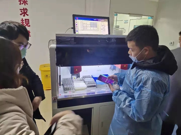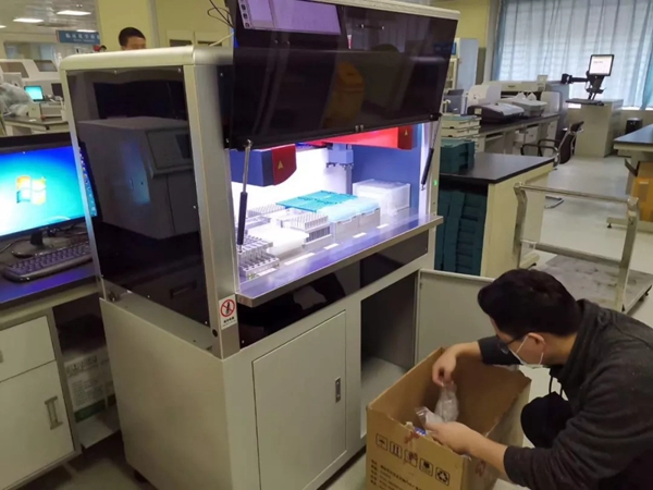 道哥曰:清晨从武汉出发,到达咸宁,然后下货、安装设备,之后组织对技术人员进行设备使用培训,直至深夜又赶回武汉。这些天来,圣湘人几乎都是这样忙碌。